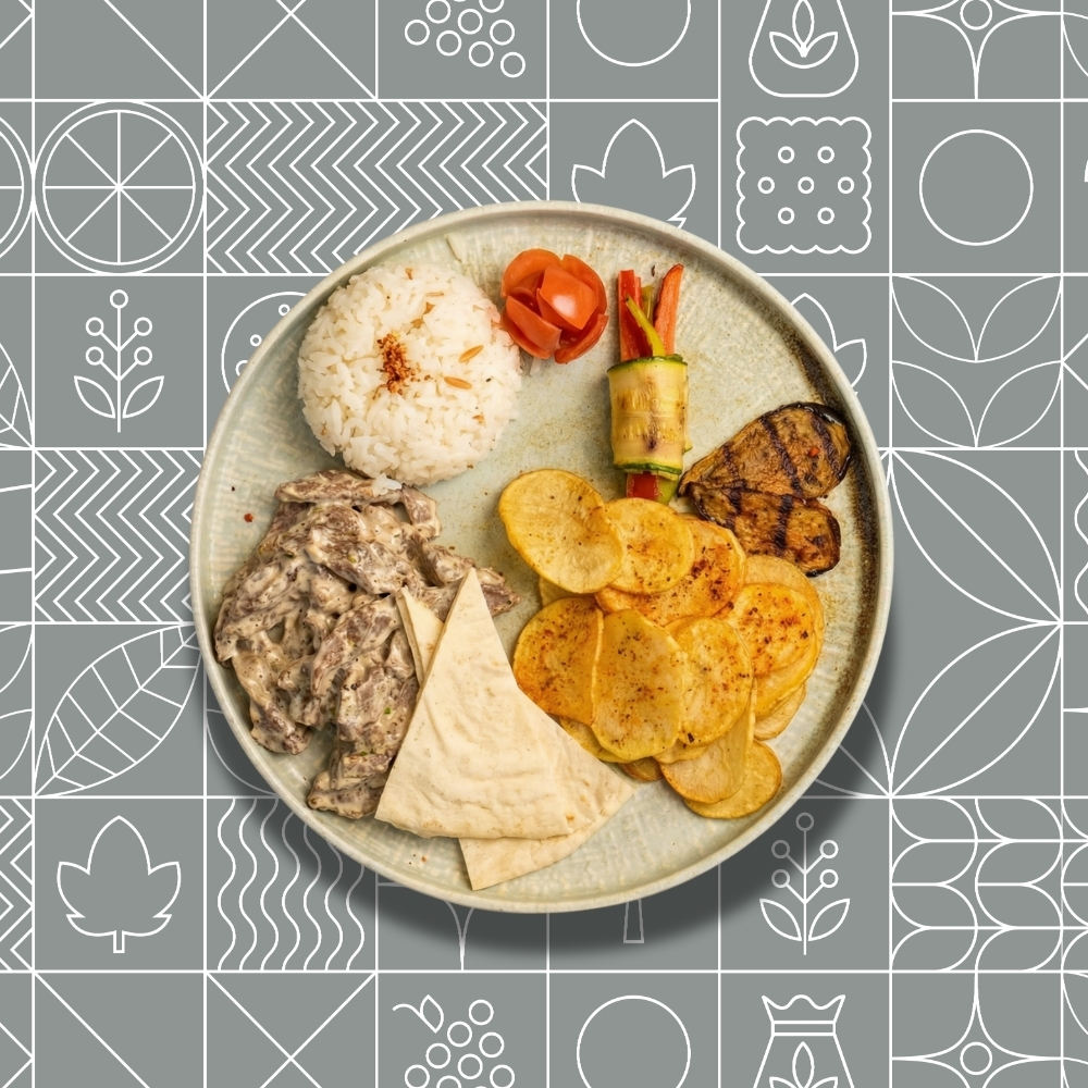 250 gram kuzu küşleme. Özel zeytinyağında marine edilmiş ızgara kuzu küşleme ve yanında elma dilim patates ve karışık mantar sote (kapya biber, yeşil biber, soğan, mantar) eşliğinde El yapımı lavaş ile sunulur.