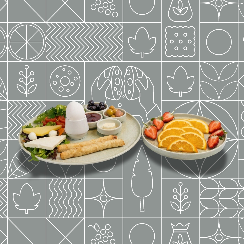 Sıcakları; Haşlanmış yumurta Peynirli kalem Böreği Soğukları; Beyaz peynir Kaşar peynir Domates, salatalık ve biber Siyah zeytin Top Peynir Yeşil zeytin Fesleğenli Tereyağı Reçel 2 bardak çay, Meyve tabağı (mevsim meyveleri)